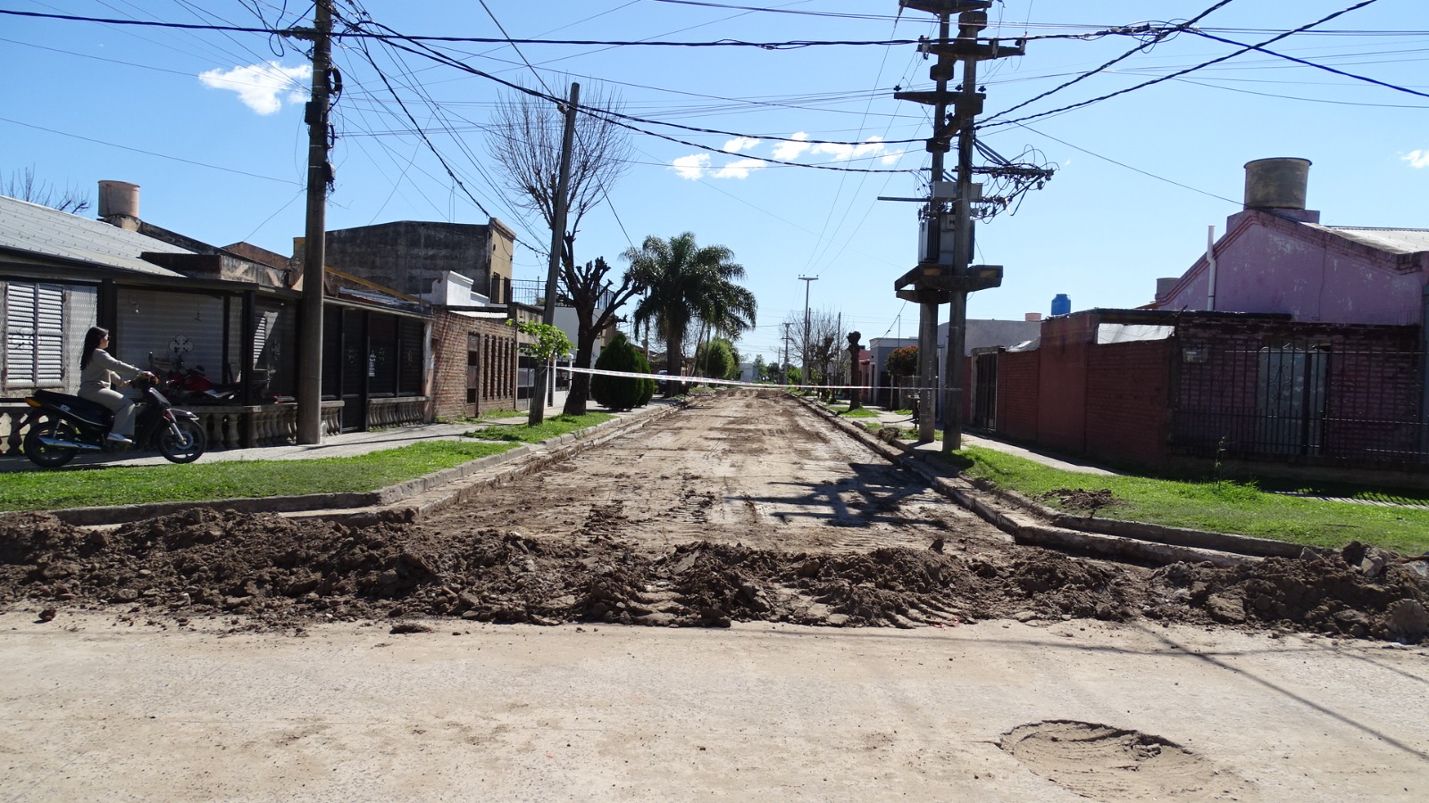 “También tenemos otra más, la calle Chile, pegada a la cancha La Bahía, entre Piragine y Blas Luccioni. Estamos a 20 metros de terminar, de unir con la calle Luccioni, o sea la cancha de fútbol estaría rodeada por pavimento”.