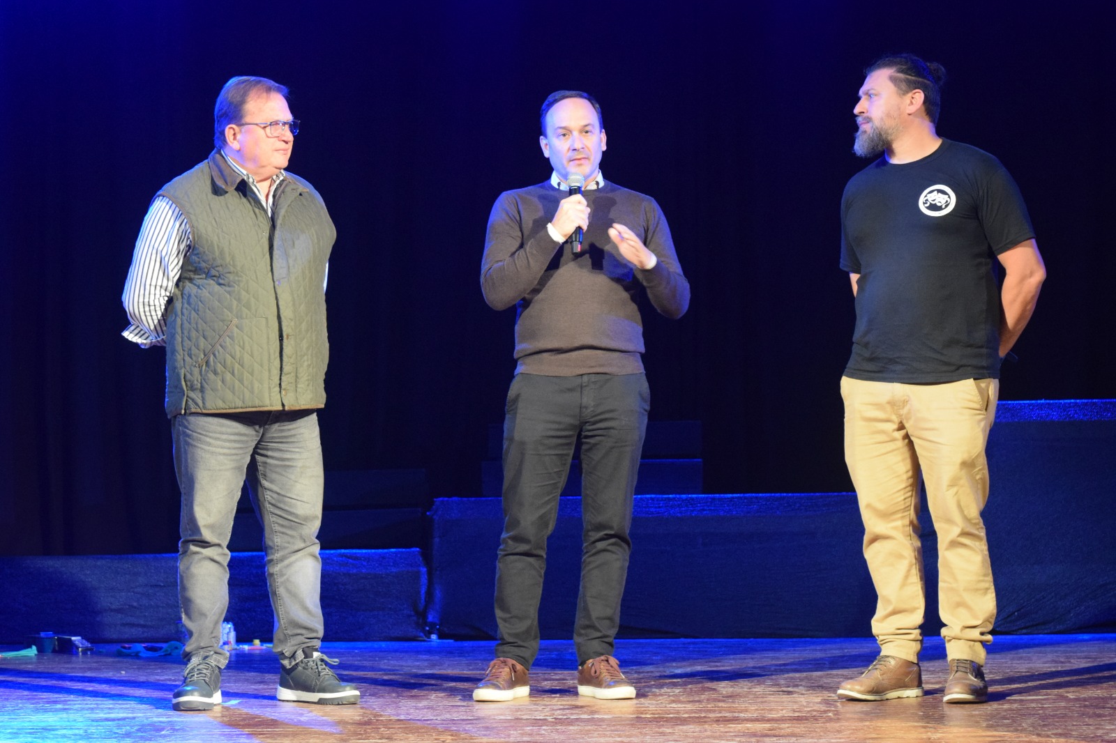 Antes de la presentación de su obra, el Intendente Municipal Mariano Hormaechea, junto al Director de Cultura Manuel Zampar y el Coordinador de la Escuela de Teatro Javier Camino hicieron entrega del reconocimiento (porque viajan en la presente jornada), por su participación en la 3ª Muestra de Teatro “Tomas Mazzanti”