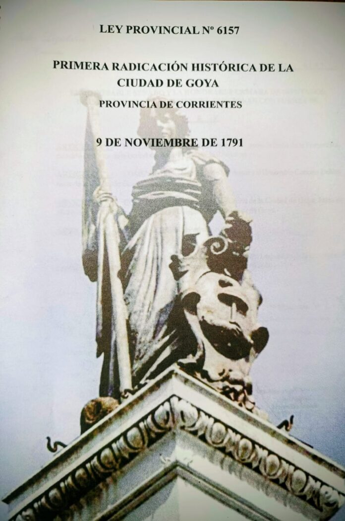 La historia de Goya, una de las ciudades más emblemáticas del sur correntino, se entrelaza con las aguas del río Paraná, las rutas del comercio colonial y las tradiciones de su gente. En 2012, la Legislatura de la Provincia de Corrientes sancionó la Ley N° 6157, que estableció como Primera Radicación Histórica de Goya el 9 de noviembre de 1791, fecha en la que aparece por primera vez mencionada la localidad en un documento público conservado en el Archivo Histórico de la Nación.