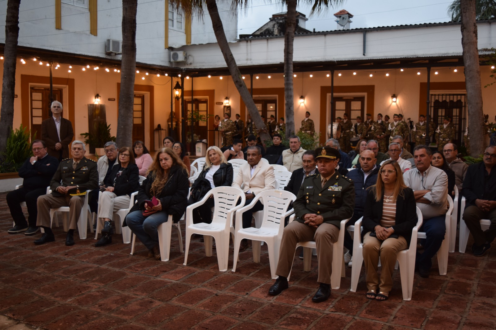 El emblemático patio de la Casa de la Cultura, fue el ámbito elegido para este sentido y emotivo homenaje que surgiera de la iniciativa de la Agrupación de Soldados Pro Patria de Santa Fe liderada por Oscar Leguizamón (quien cumpliera con el servicio militar en la ciudad de Goya)
