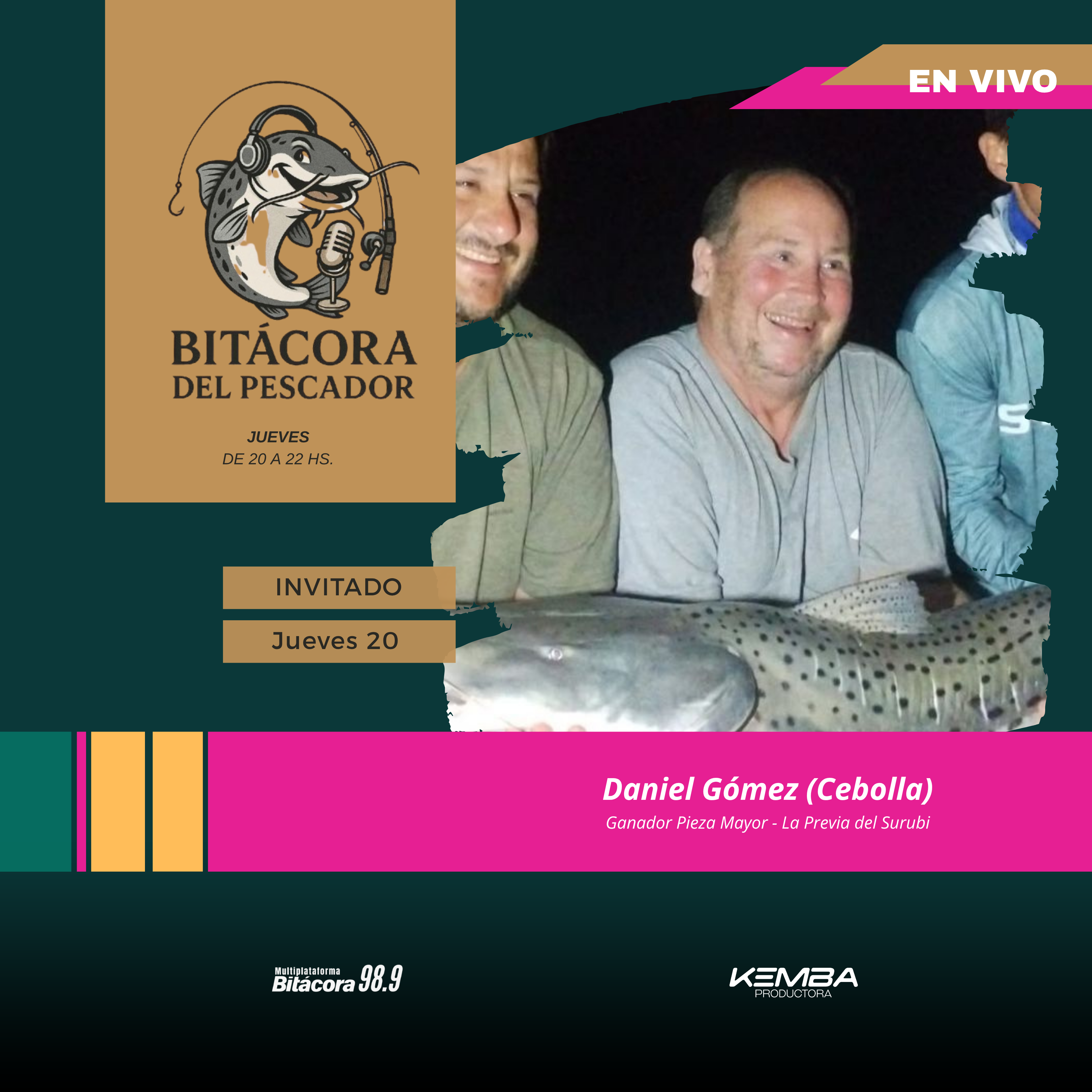 l tradicional programa Bitácora del Pescador, emitido todos los jueves de 20 a 22 horas por la Multiplataforma Bitácora, recibirá esta semana a un invitado destacado dentro del ámbito pesquero regional: Daniel Gómez, conocido afectuosamente como “Cebolla”, reciente ganador de la Pieza Mayor en la VII edición de La Previa del Surubí.