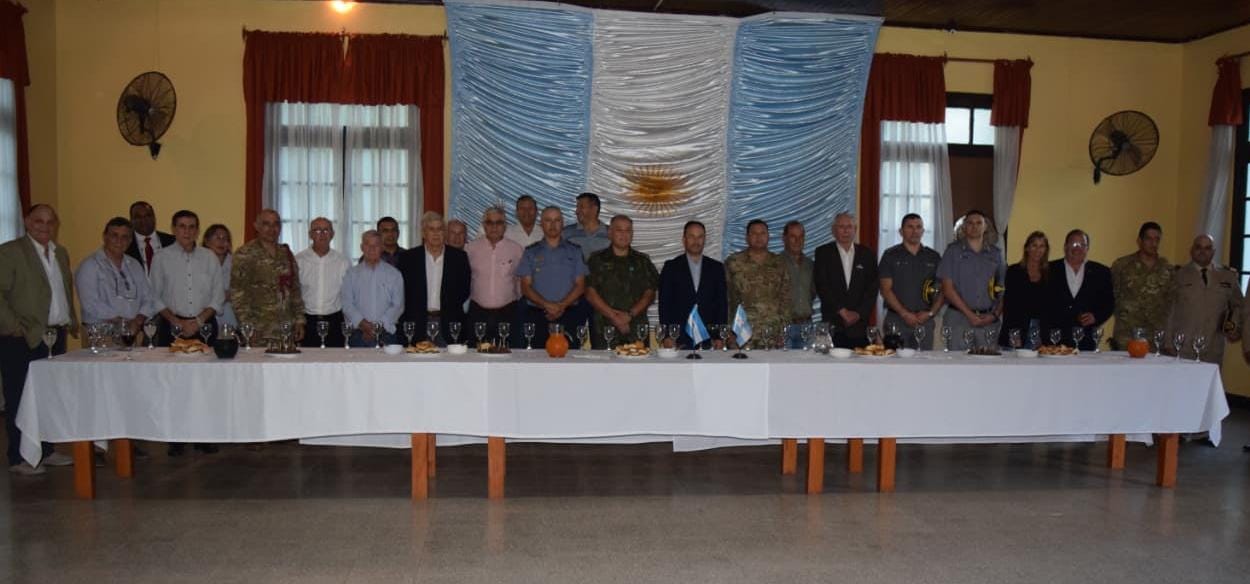 Del acto llevado a cabo en horas de la tarde del lunes, junto al jefe comunal formaron parte de la celebración los jefes de las Fuerzas Armadas, de Seguridad radicadas en nuestra ciudad, el capellán del ejército, misionero redentorista padre Boris Escobar, quien se encargó de la invocación religiosa; funcionarios municipales, concejales y el presidente de la COMUPE Raúl González Vilas.