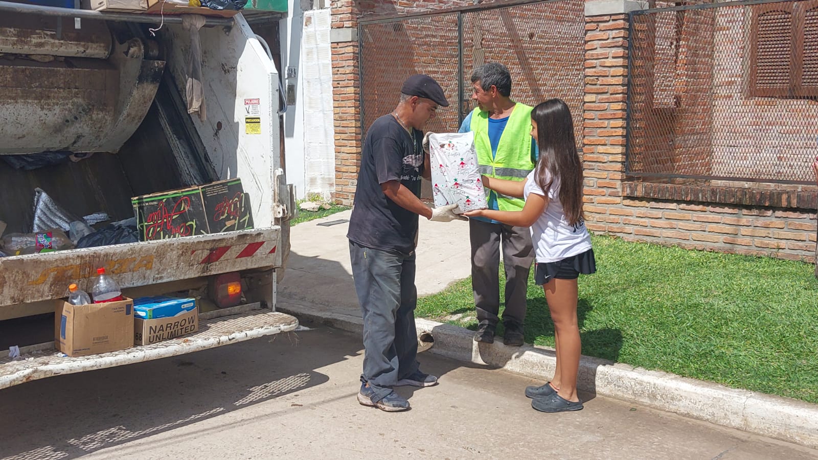 La vecina destaca el trabajo de los agentes de servicio de la municipalidad, considerando como “amigos a los recolectores”, de allí la entrega de los presentes para que puedan compartir con sus familias.