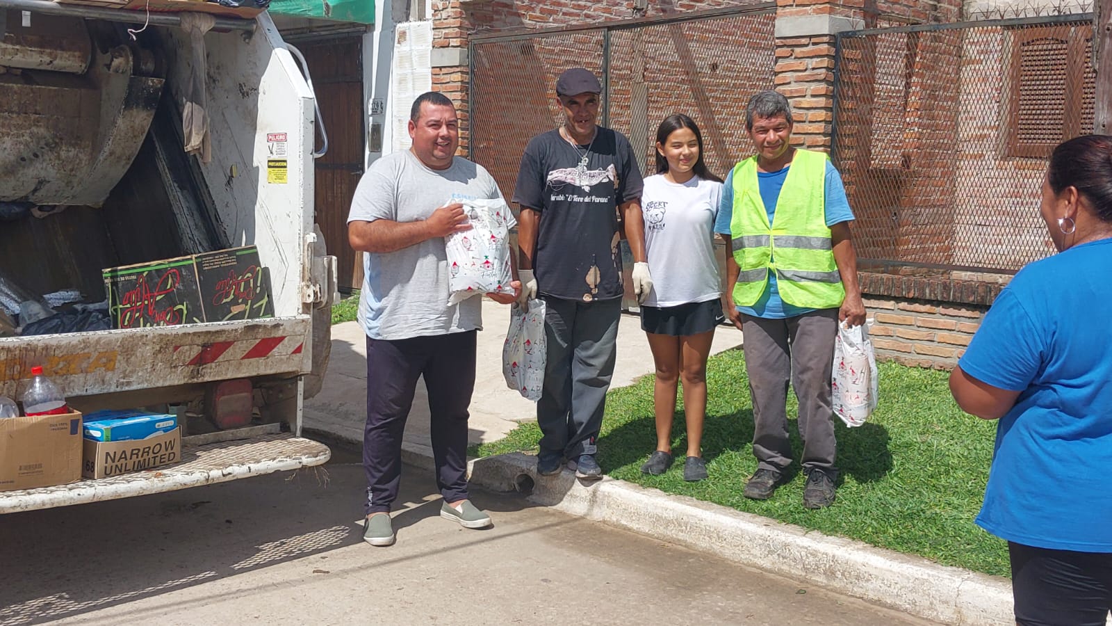 La vecina destaca el trabajo de los agentes de servicio de la municipalidad, considerando como “amigos a los recolectores”, de allí la entrega de los presentes para que puedan compartir con sus familias.