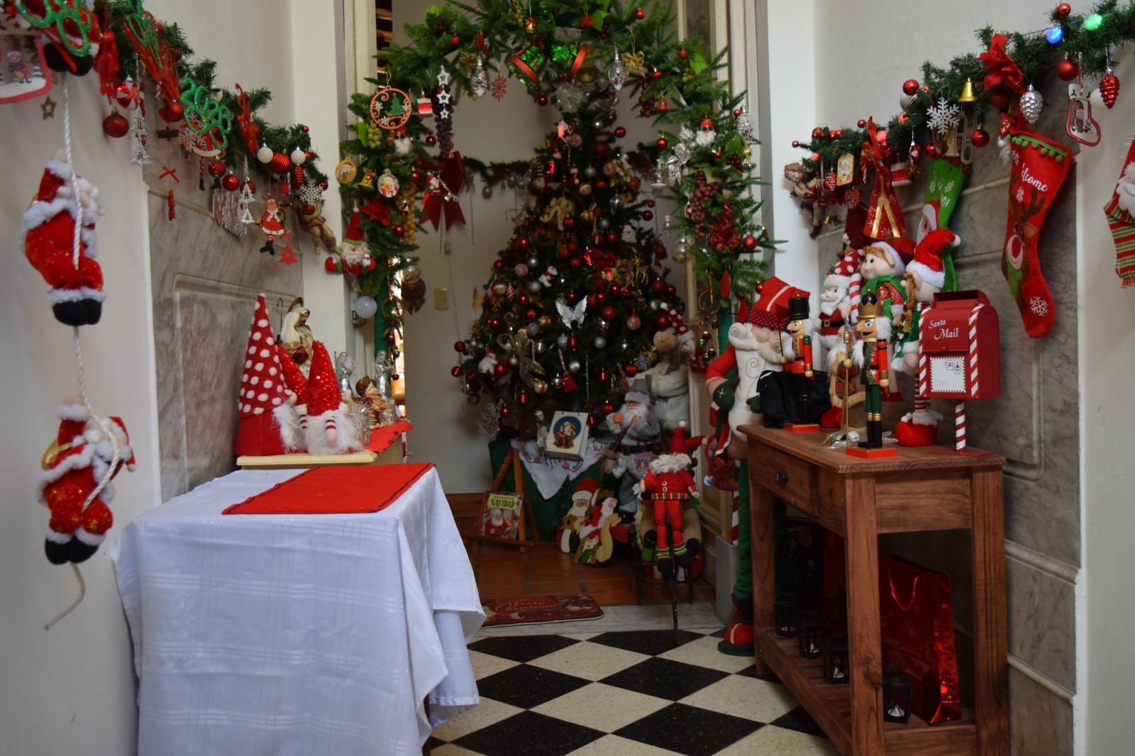 Desde el ingreso mismo de la residencia, la ambientación se compone de una formidable colección de pesebres, de arbolitos de navidad, (pinos) los personajes de la fecha (Papa Noel, duendes, ángeles), que invita a “experimentar” la navidad.
