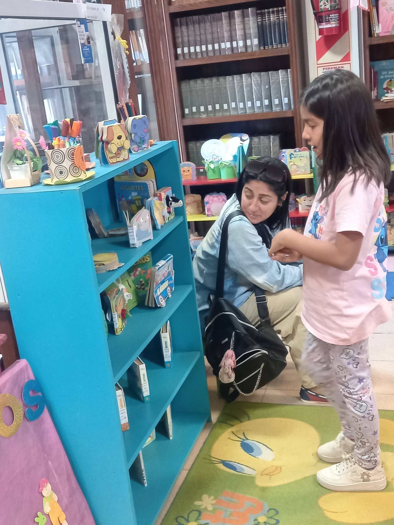 Durante la semana que concluye, en la reapertura de ese rincón, cuentan desde la Biblioteca Popular, sobre la visita de Aishli y su mamá Jimena, leyeron; manipularon libros; descubrieron obras y autores, entre ellos los “Cuentos de Zinnia” de la querida Sandra Aguirre, aunque ya tienen algunos ejemplares en su casa; incluso libritos para colorear de Fripin de la Biblioteca Mariano Moreno de Mocoretá.