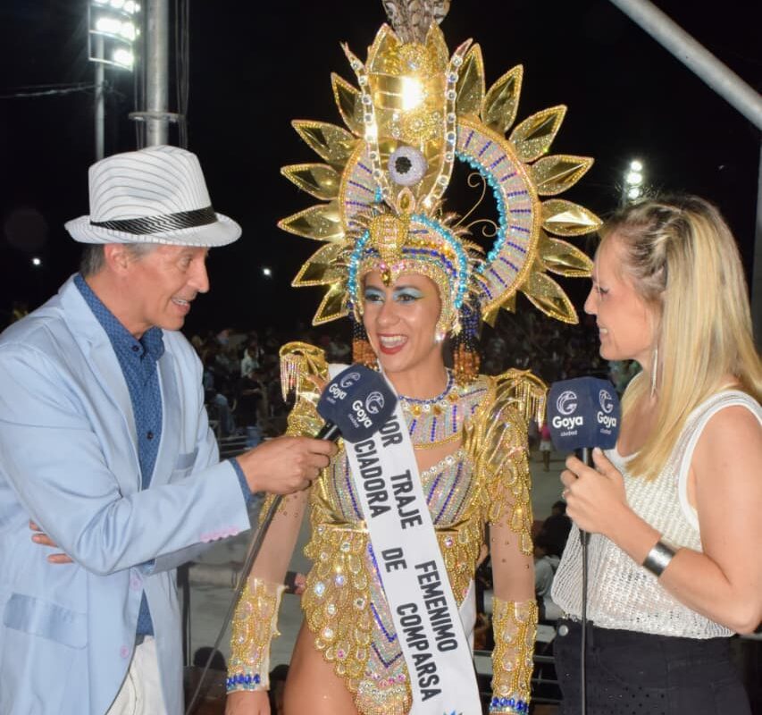 Macarena Perrotta, integrante de la comparsa Ita Vera, luciendo el espléndido y espectacular traje que le valió el premio, comentó: “Uno nunca espera este reconocimiento, aunque trabajamos todo el año para esto”.