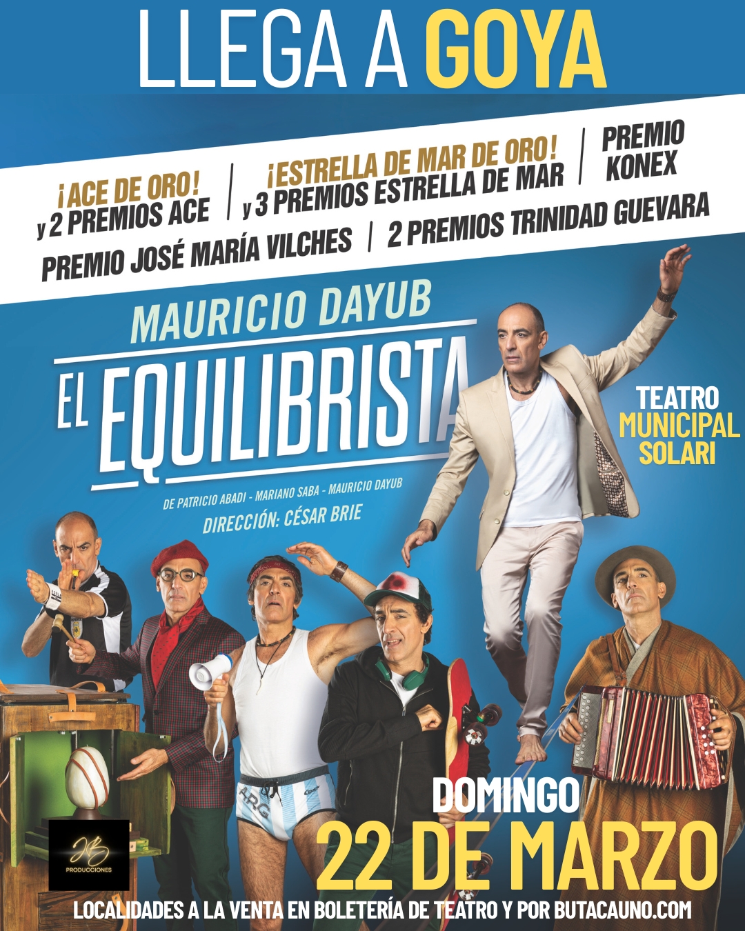 El reconocido actor argentino Mauricio Dayub se prepara para desembarcar en el Teatro Municipal de Goya el próximo 22 de marzo con su multipremiado unipersonal “El Equilibrista”. “Es un espectáculo que acerca, que nos representa a todos…”, dijo sobre este viaje a las raíces, a los vínculos familiares y en búsqueda constante del equilibrio emocional.