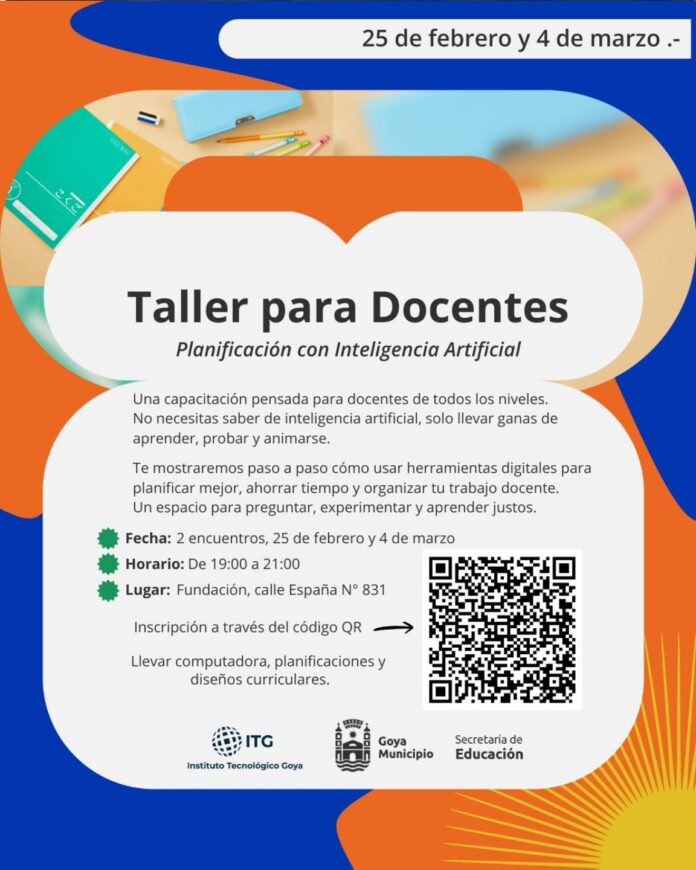 El taller está destinado a los docentes de todos los niveles del ámbito educativo, se dictará en la sede de la Fundación Para el Desarrollo Universitario de Goya, sita en calle España 831, en dos encuentros: los días 25 de febrero y 4 de marzo, en el horario de 19 a 21.