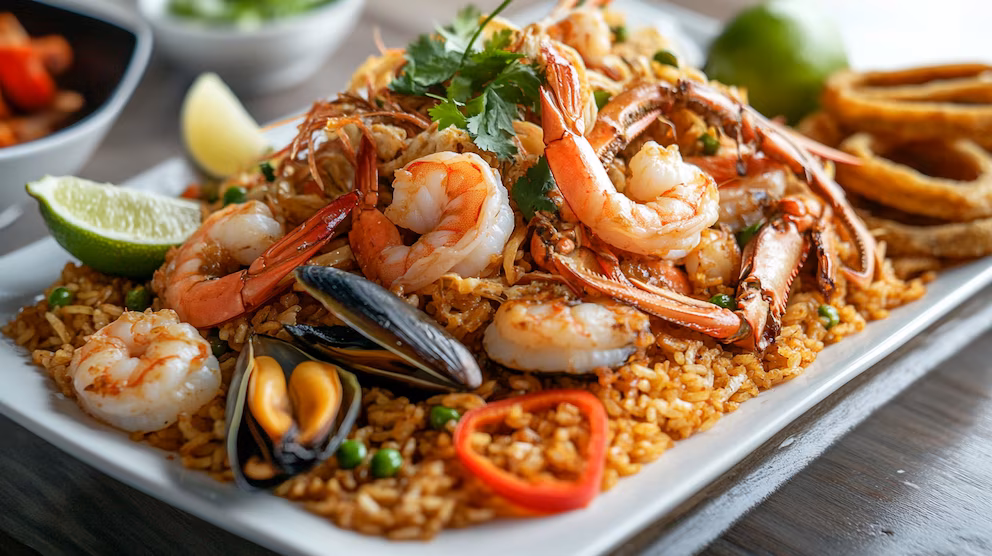 - Mariscos preparados con salsas saladas: Camarones, pulpo o calamares preparados en salsa de soja, salsas comerciales o empanizados, elevan el aporte de sodio.