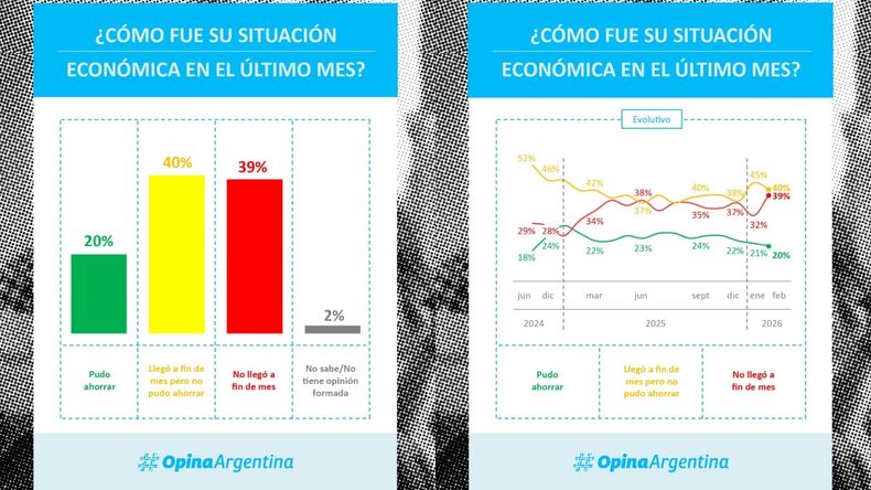 Se trata de un trabajo realizado por la consultora Opina Argentina donde concluye que el porcentaje de personas que no llega a fin de mes subió 7 puntos en el segundo mes del año y alcanzó el nivel más alto desde que asumió el Presidente: 39%.