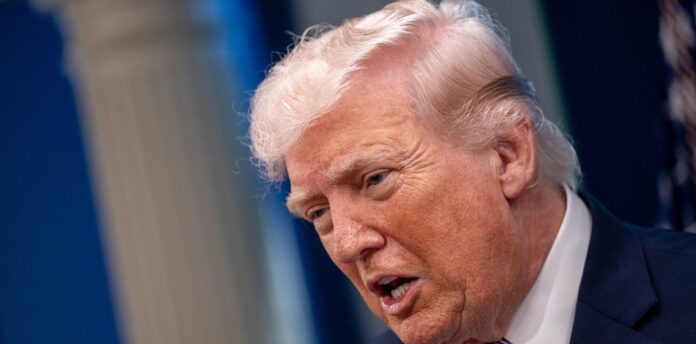 El presidente estadounidense Donald Trump informa a los medios de comunicación sobre Irán desde la Sala de Prensa James S. Brady de la Casa Blanca. Foto EFE