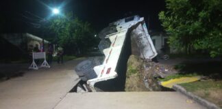 CAMION DE SERVICIOS SE HUNDIÓ POR ROTURA CAÑO DE RED CLOACAL